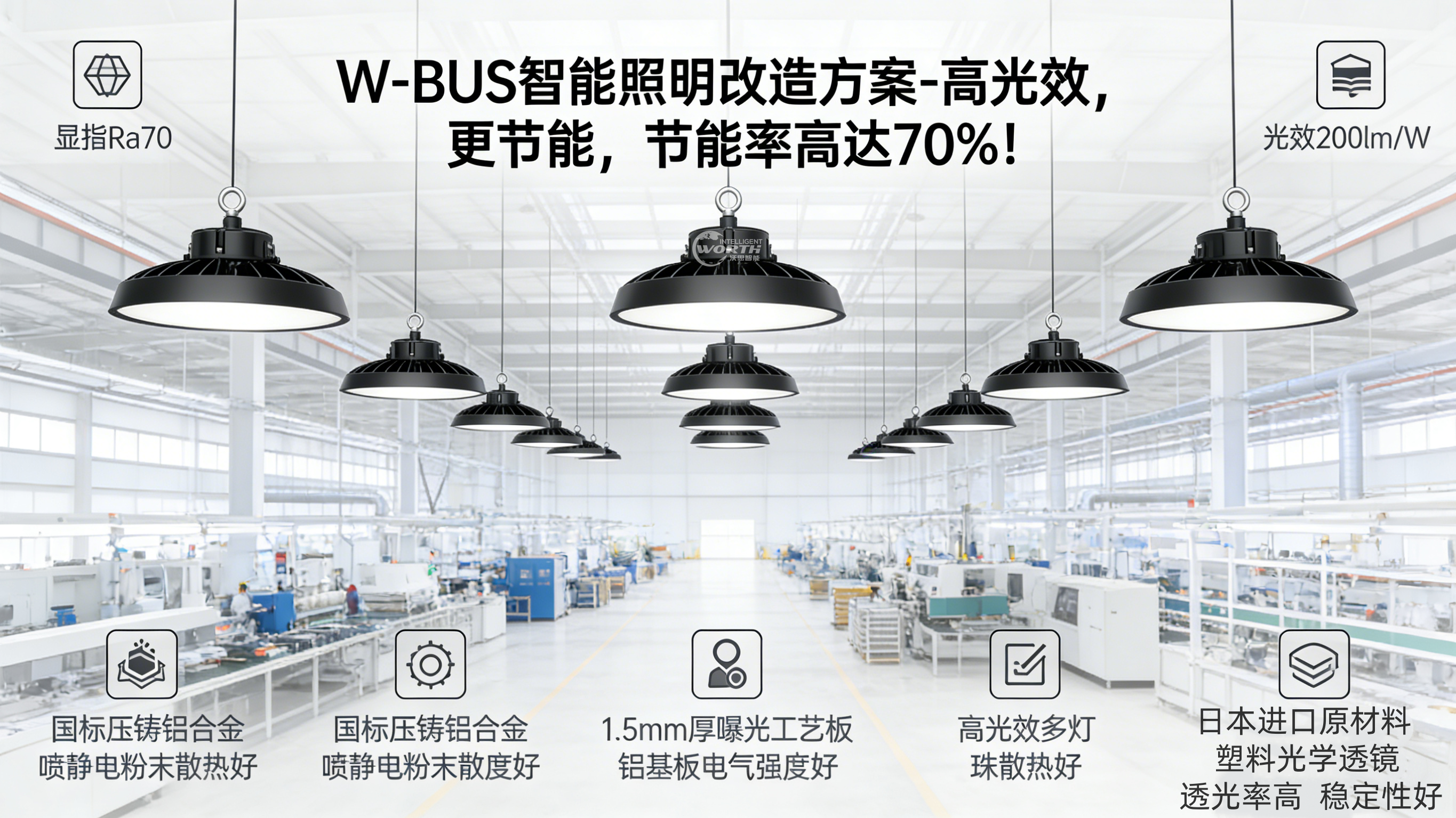 沃思智能工厂照明节能改造方案,针对各种工厂车间设计的照明灯具,适应各种车间要求,欢迎咨询!